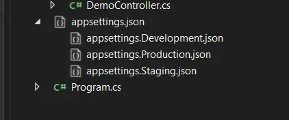 In this demo project, there are three "appsettings.{environment}.json" files included to simulate real-life scenarios.