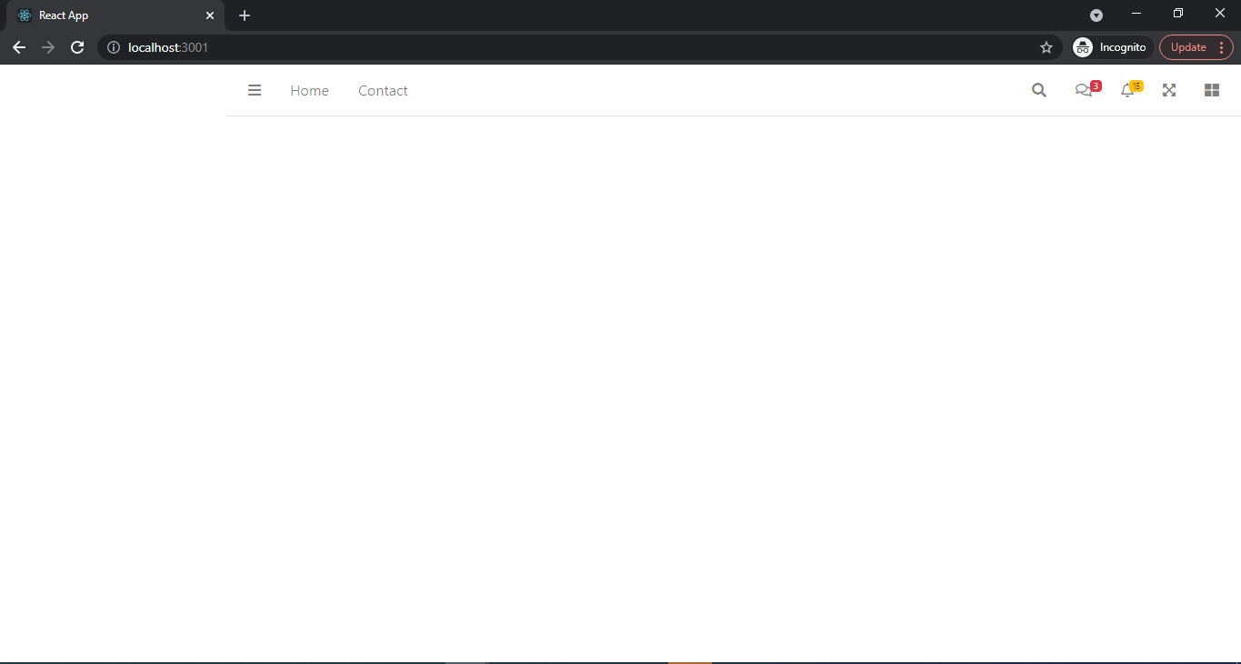Note: As we have not added any content part so the footer is displayed on top.