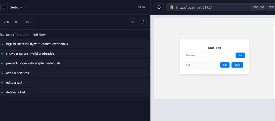Writing Cypress E2E tests that validate login and Todo operations, including both positive and negative scenarios.