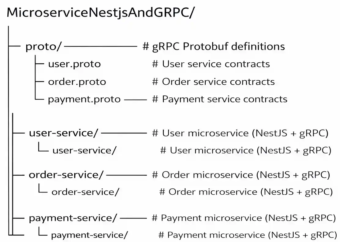 This setup demonstrates a high-performance microservices architecture using NestJS and gRPC, ideal for internal service-to-service communication.